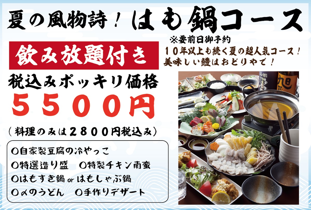 家族や友人、デートなど色々ならシチュエーションでご利用できます! 今年も、鱧をあつかいます!