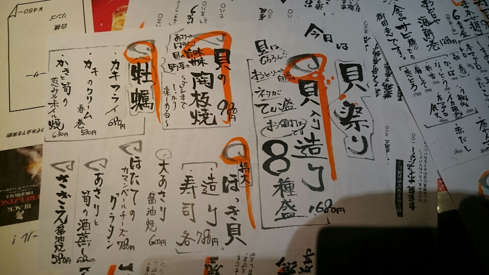おすすめでは、 『天然平目』 『大溝貝』 『ボタン海老』などなど
